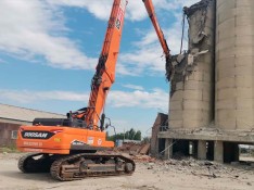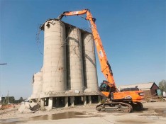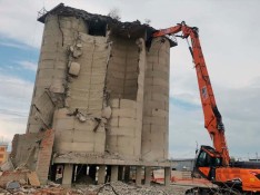 Демонтаж элеватора зерноподачи высотой 36 м демонтажным экскаватором-разрушителем