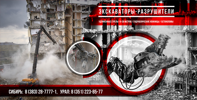 Снос 11 этажного многоквартирного дома с применением демонтажного экскаватора-разрушителя