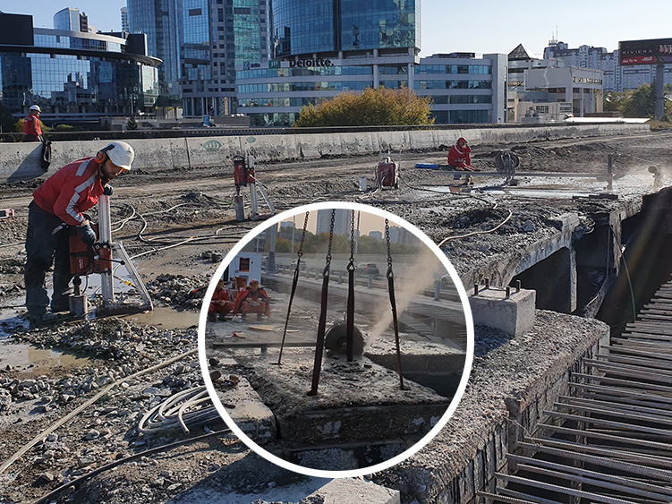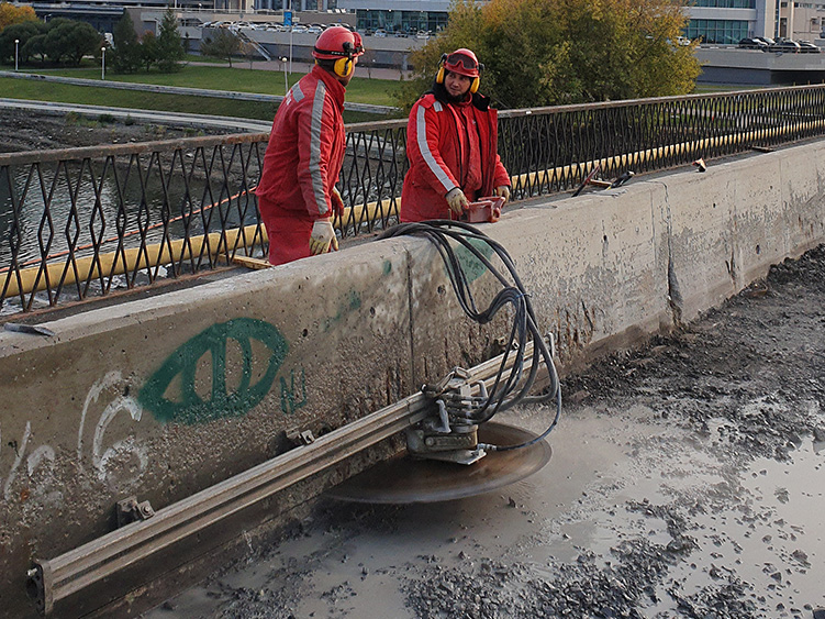 Демонтаж северной и южной полосы старого Макаровского моста методом алмазной резки