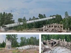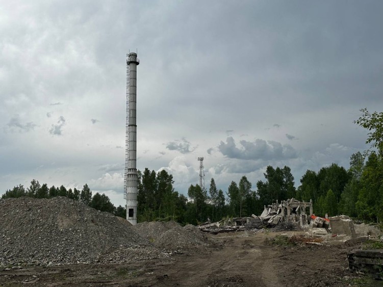 Демонтаж аварийной дымовой трубы высотой 96 м