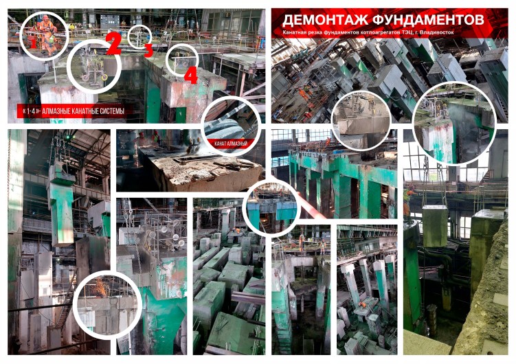 Демонтаж фундаментов методом алмазной резки стенорезными дтсковыми и канатными системами